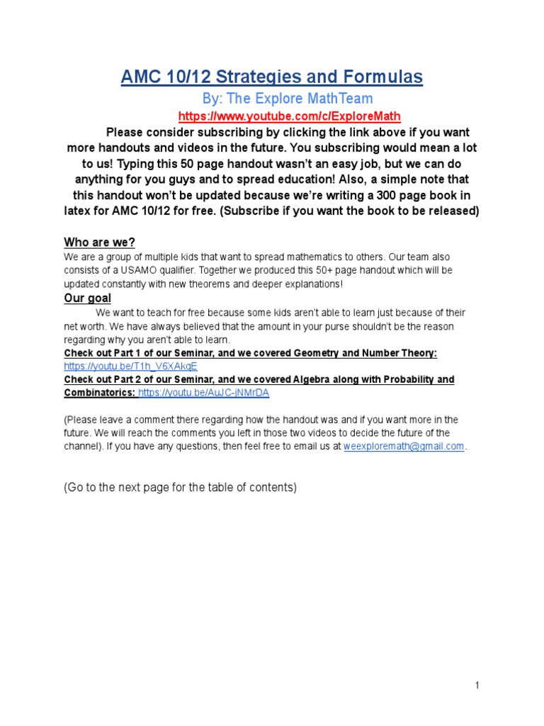 Amc 10 12 Strategies And Formulas Pdf Triangle Mathematics